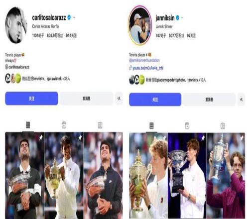 若单看今年的表现,阿尔卡拉斯豪取71胜利,仅负9场,排名世界第一,势头正猛,为何赢家仍是辛纳? 从“粉圈逻辑”中可以窥见一二,即球员一年的表现并不起到决定作用,更重要的吸引到了多少愿意去官网投票的粉丝。 从海外社交媒体(instagram)的数据上,阿尔卡拉斯拥有803万粉丝,辛纳则是507万粉丝。粉丝量更少的辛纳却有着更加凝聚的受众群——在需要注册投票的机制下,这样的“死忠粉”不容小觑。